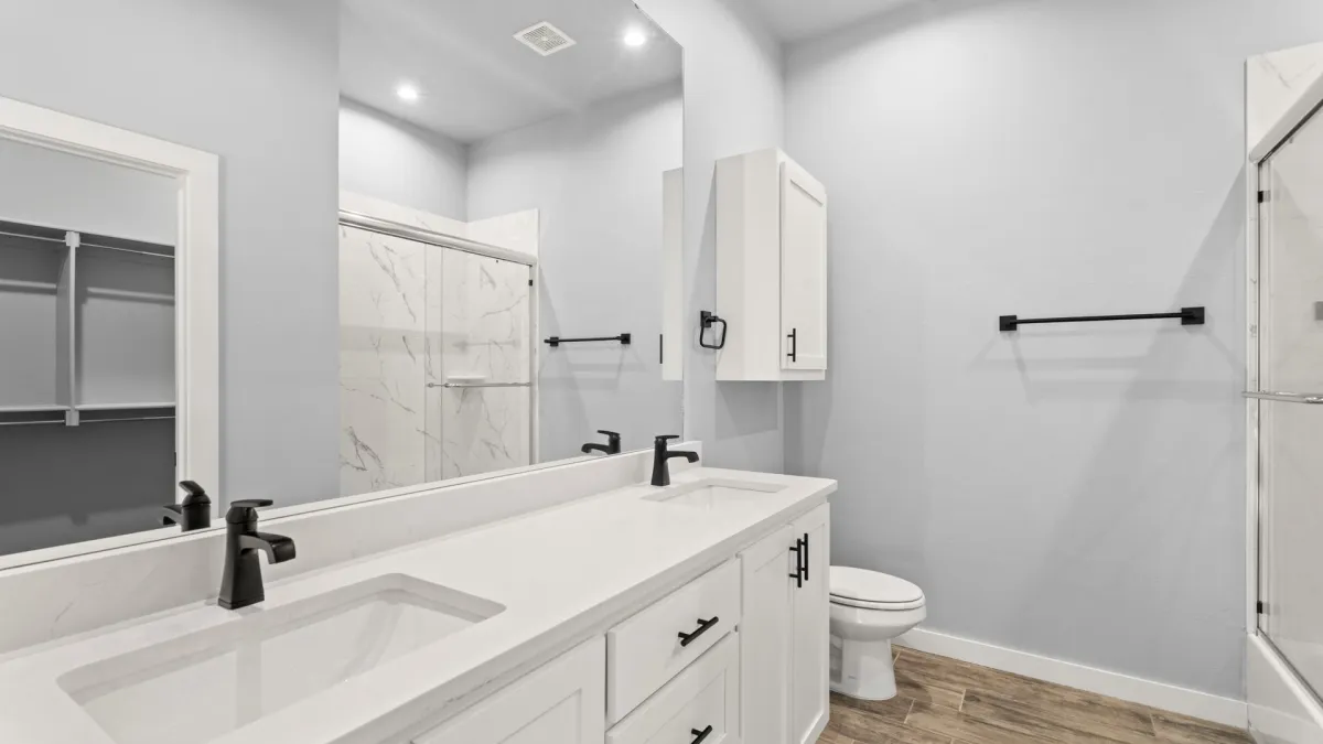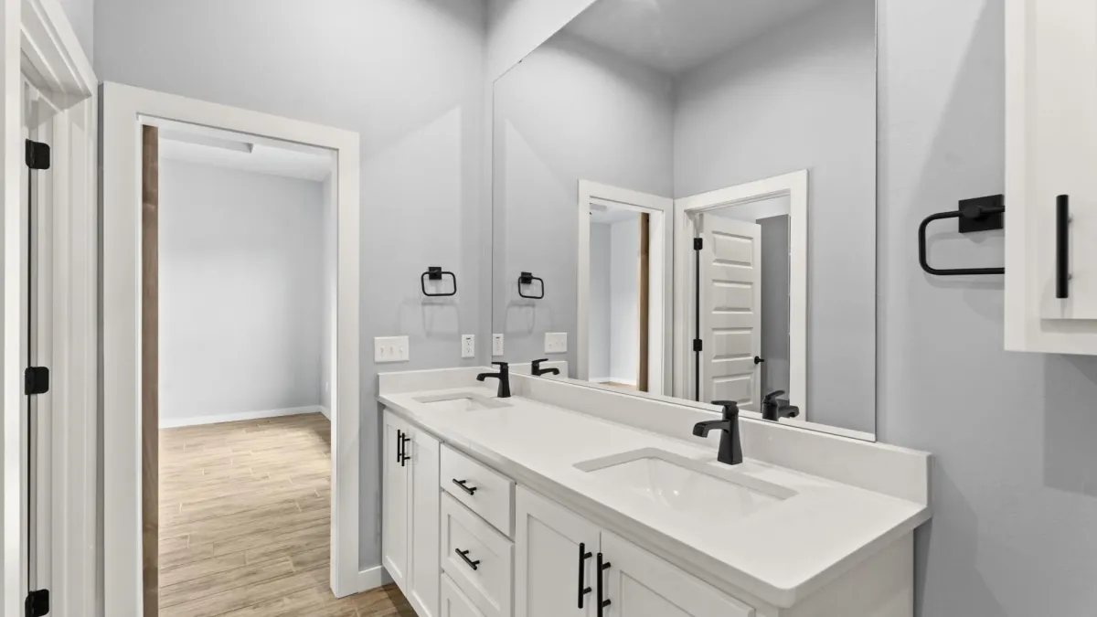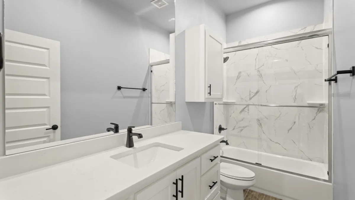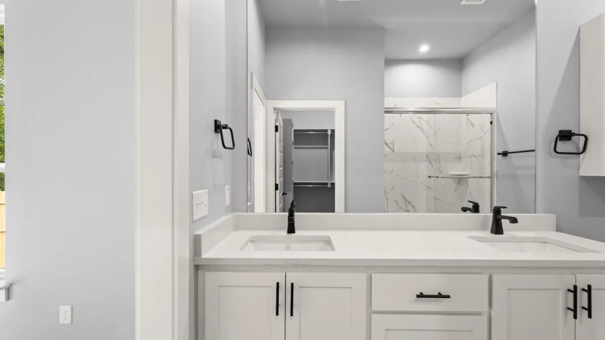 Retreat to the primary suite, complete with a spa-like bathroom, barn-door entry, and oversized walk-in closet. Energy-efficient windows, spray-foam insulation, loose-fill attic insulation, and a post-tension foundation ensure comfort, durability, and lower utility costs. The living area also includes a premium Big Fan ceiling fan, combining sleek style with performance.